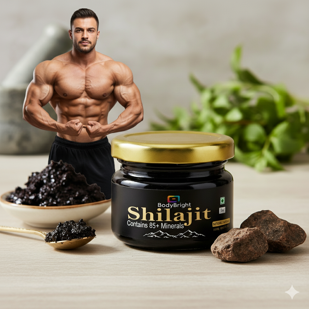 BodyBright Shilajit is a premium, sun-processed Himalayan resin crafted using the time-honored Ayurvedic method of purification with Triphala Kwath and cow’s milk. Enriched with 77%+ Fulvic Acid and 90+ essential minerals, this elixir rejuvenates your body—supporting